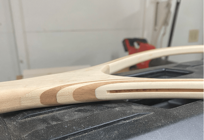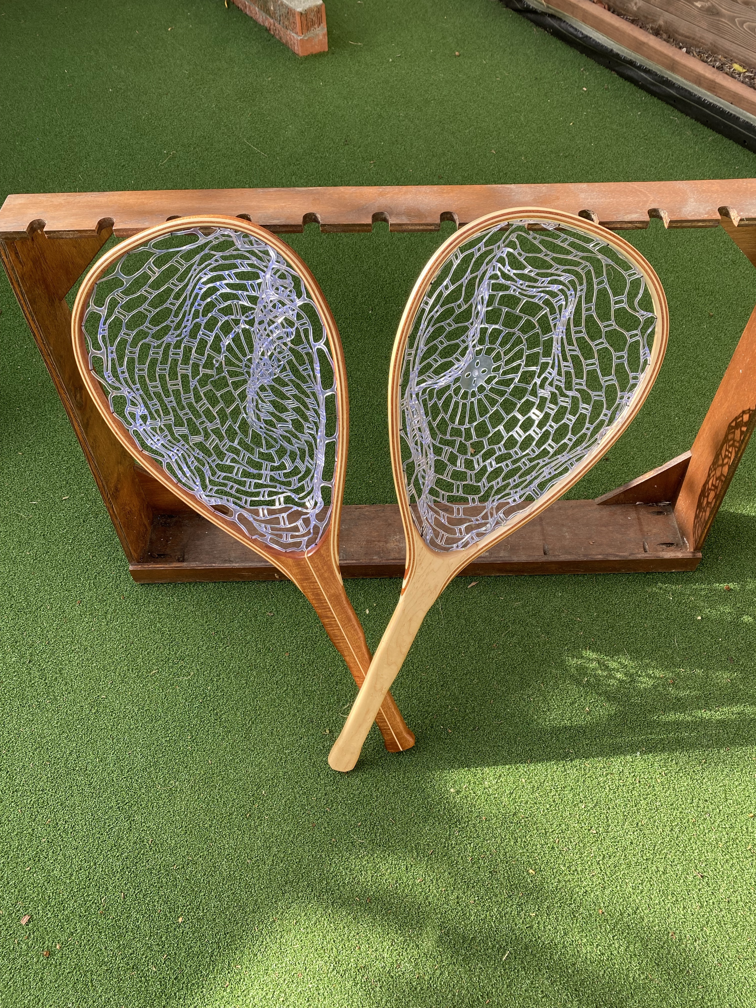 The net pictured above is made from African Mahogany and Birds Eye Maple